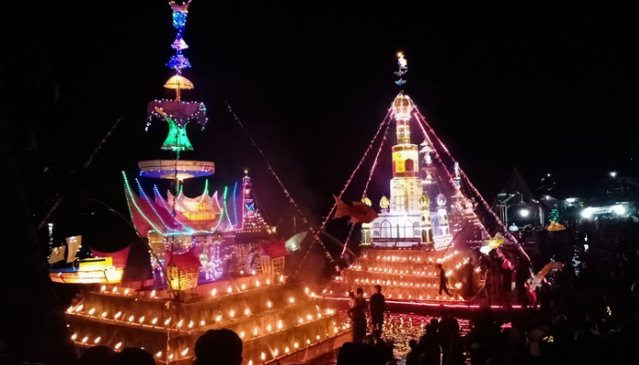 Rakit-rakit ini tidak hanya sekadar ornamen, melainkan sebuah simbol kegembiraan dan rasa syukur atas berakhirnya bulan Ramadan. Masyarakat mengapungnya di atas danau sebagai bentuk ungkapan syukur kepada Tuhan Yang Maha Esa atas rezeki dan kesehatan yang diberikan. Lampu-lampu yang menghiasi rakit menciptakan suasana magis yang memukau, menggambarkan kedamaian dan kebersamaan dalam merayakan Hari Raya Idul Fitri.